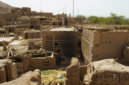 在古老的村落中, 居民们继承了两千多年来用黄粘土建造房屋的传统习惯。 一些建筑还遗留着佛教文化和伊斯兰教文化交相融合的印记。 古村落中的房屋建筑均是以黄粘土制坯建成的窑房, 有大有小,有高有矮;有一层的,也有两层以上的;有独立成房的,也有沿山势连成一片的。其特点是经济实惠、冬暖夏凉。