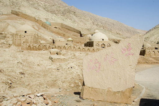 吐峪沟麻扎 位于吐峪沟千佛洞的西边,全称为"吐峪沟艾斯哈布凯海夫"〔波斯语,意为"圣人住的洞穴",麻扎〔指穆斯林的墓园〕。 又被称为"中国的麦加"。据说,到麦加朝圣前一定要先到吐峪沟麻扎朝圣。据勒柯克记载,直到二十世纪初,仍有土耳其、印度的穆斯林到这里朝圣。现在,每年前来朝圣的大陆、香港、澳门、台湾,以及德国、土耳其等地的穆斯林络绎不绝。