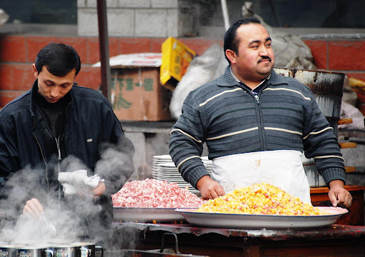 2006年11月拍摄于乌鲁木齐 “烤肉”---烤肉串也要流水作业